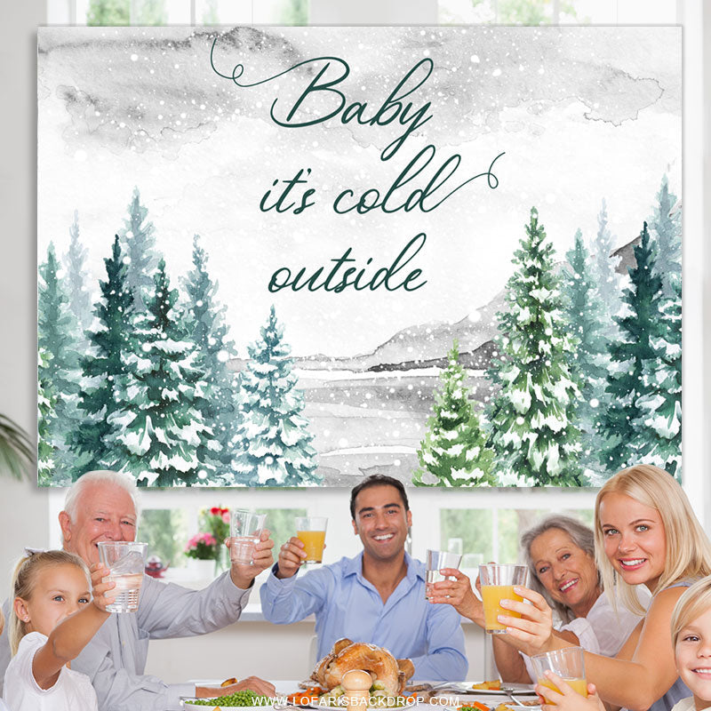 Snowy Forest Its Cold Outside Baby Shower Backdrop