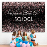 Welcome Back To School Rose Gold Glitter Black Backdrop